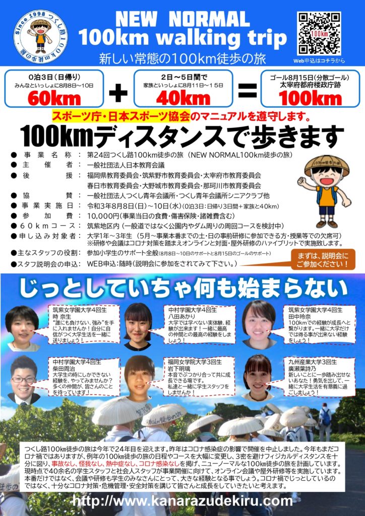 第24回(令和3年)【つくし路100km徒歩の旅 学生スタッフ説明会申し込み】